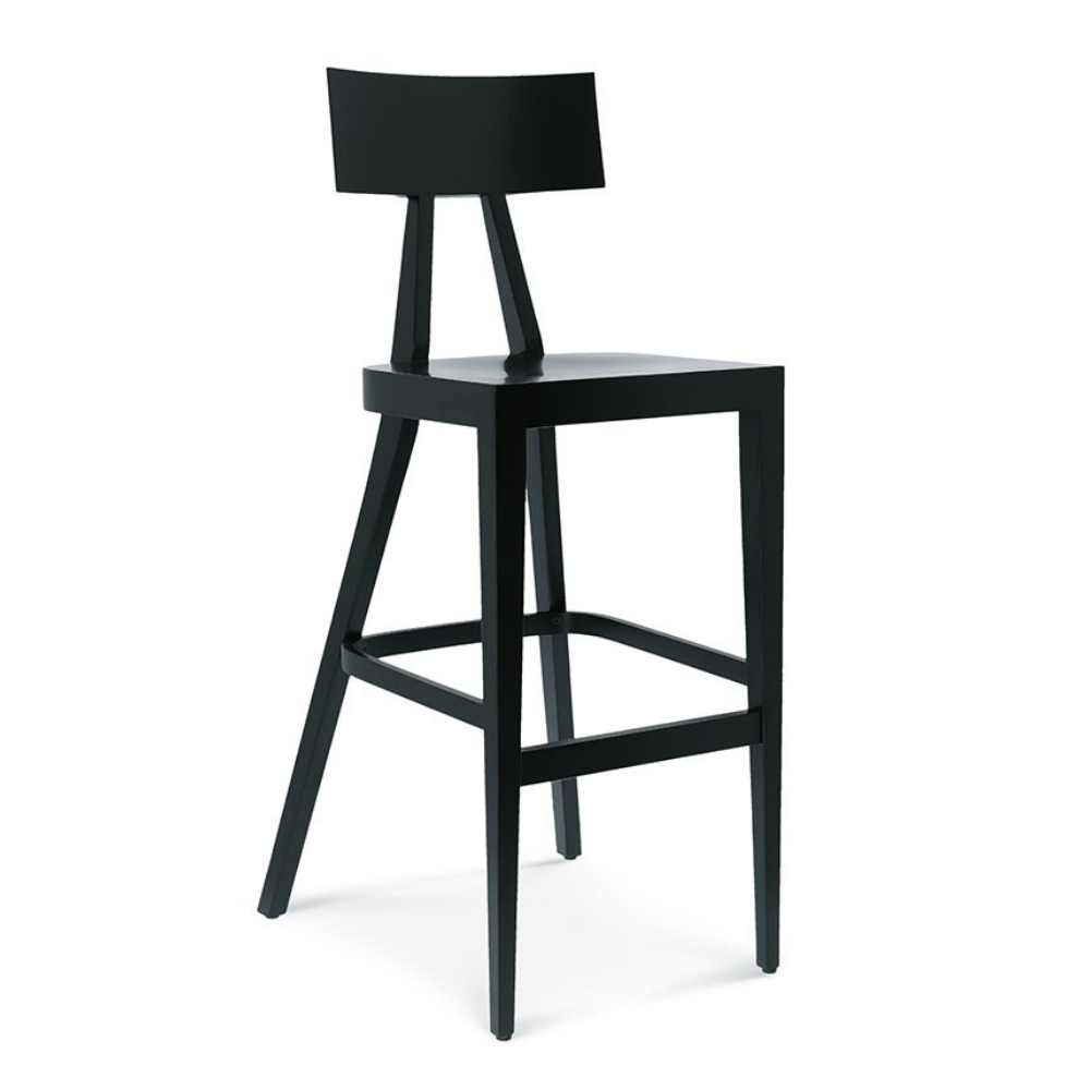 Der Premium Barhocker Akka ist inspiriert vom japanischen Minimalismus und zeichnet sich durch eine leicht profilierte Rückenlehne aus Sperrholz sowie asymmetrische Beine aus. Dieses elegante Design verbindet klare Linien mit hoher Stabilität – ideal für gehobene Gastronomie, Bars und moderne Wohnräume.
