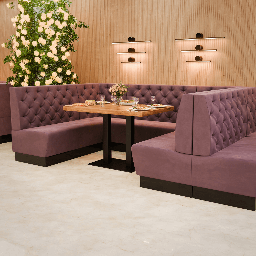 Die Gastro Sitzbank Amsterdam ist die bequeme Dinerbank für Restaurants, Cafés und Hotels – robust, pflegeleicht und ideal für stark frequentierte Gastronomie.