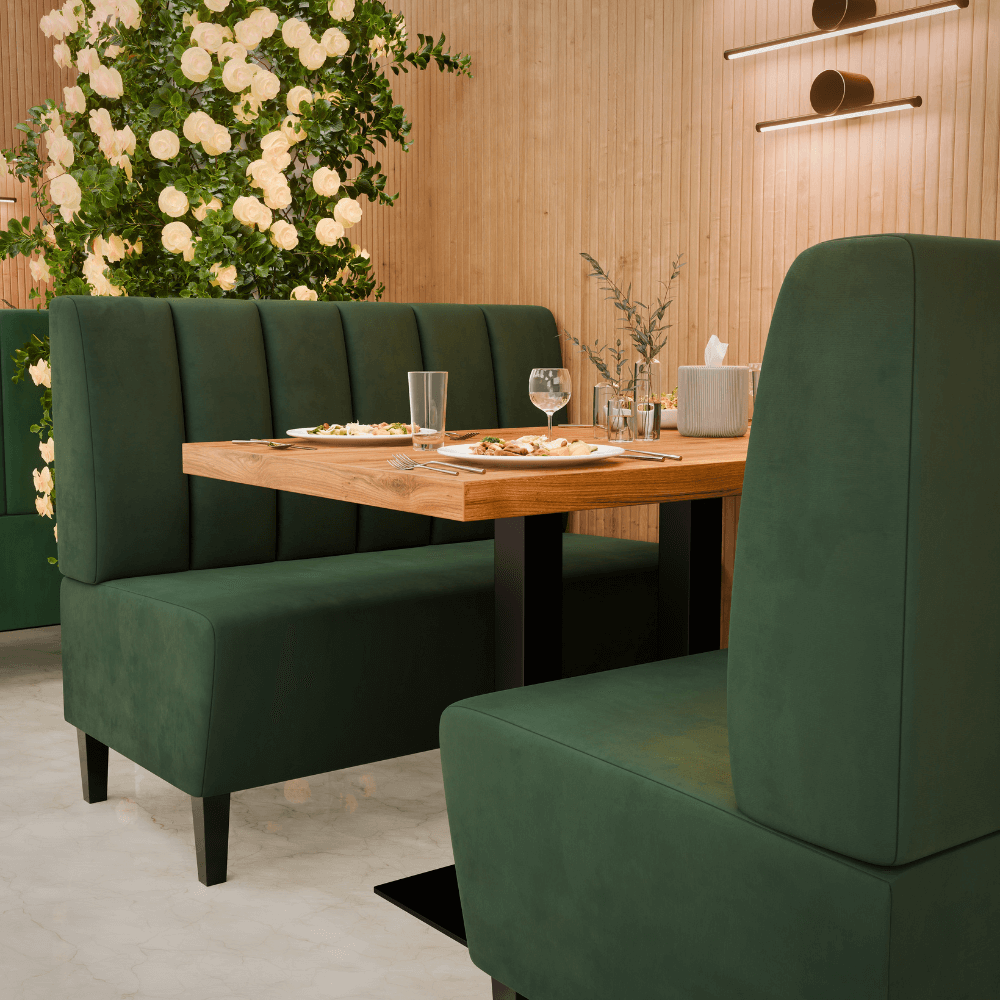 Du siehst: Gastro Sitzbank Paris | 140 cm breit | Samtstoff in Grün | Vertikal | Dinerbank 349,90€