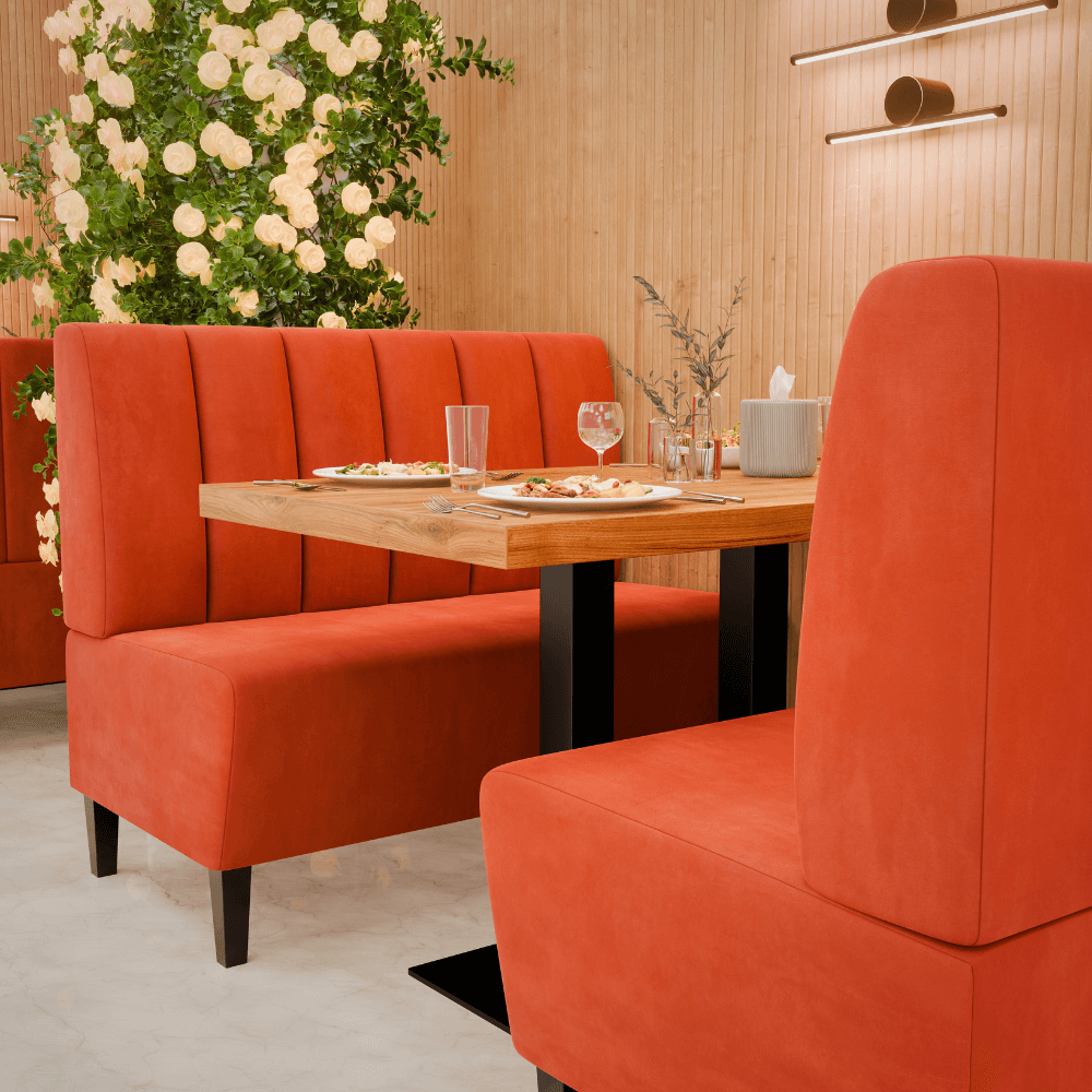 Du siehst: Gastro Sitzbank Paris | 160 cm breit | Samtstoff in Orange | Vertikal | Dinerbank 399,90€