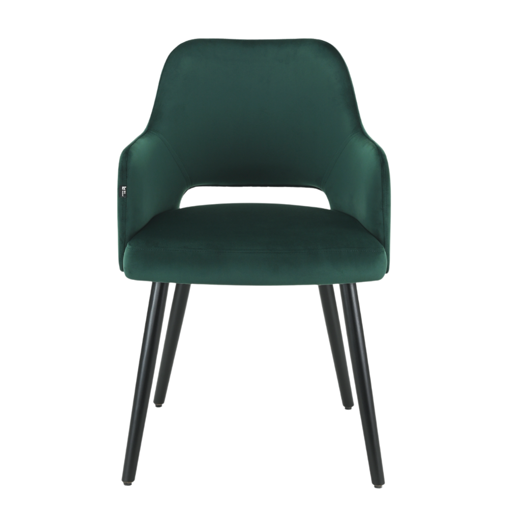 Ein Meisterwerk modernen Designs für anspruchsvolle Gastronomie-Konzepte: Der Gastro Stuhl | Eleganza Comfort | Samt Grün vereint luxuriöse Ästhetik mit kompromissloser Qualität. Die edle Samtpolsterung in sattem Grün ruht auf einem schwarz gebeizten Buchenholzgestell, das dank präziser Handwerkskunst eine zeitlose Eleganz ausstrahlt und den täglichen Anforderungen des professionellen Einsatzes mühelos standhält.