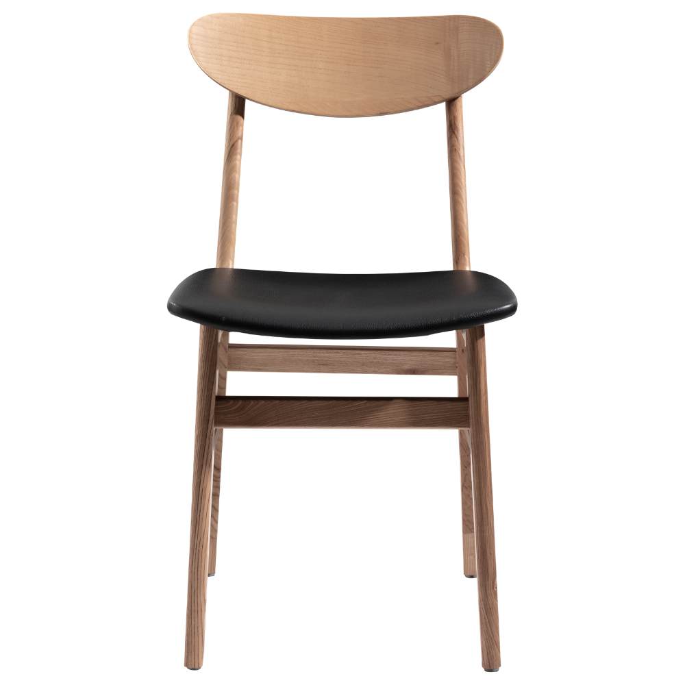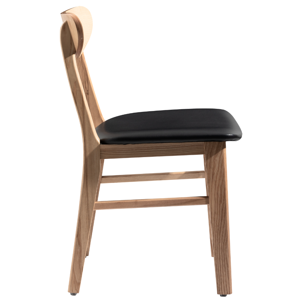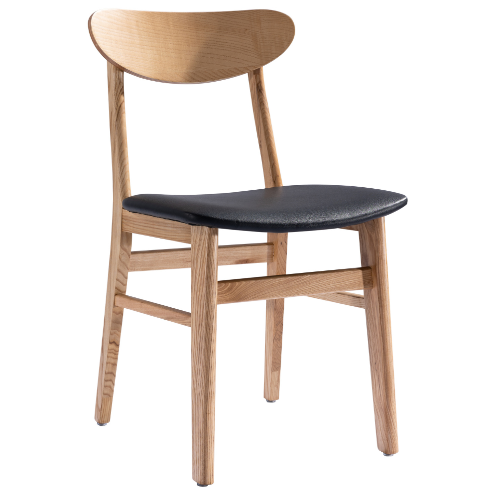 Der Massivholzstuhl London mit Polsterung kombiniert die edle Walnuss-Ausführung mit einer schwarzen Sitzfläche. Ideal für Restaurants, Cafés und Hotels.