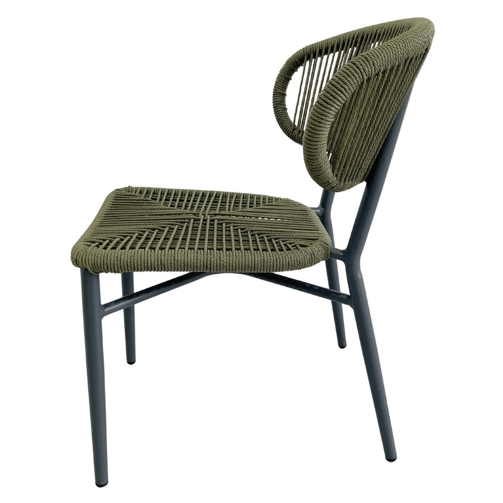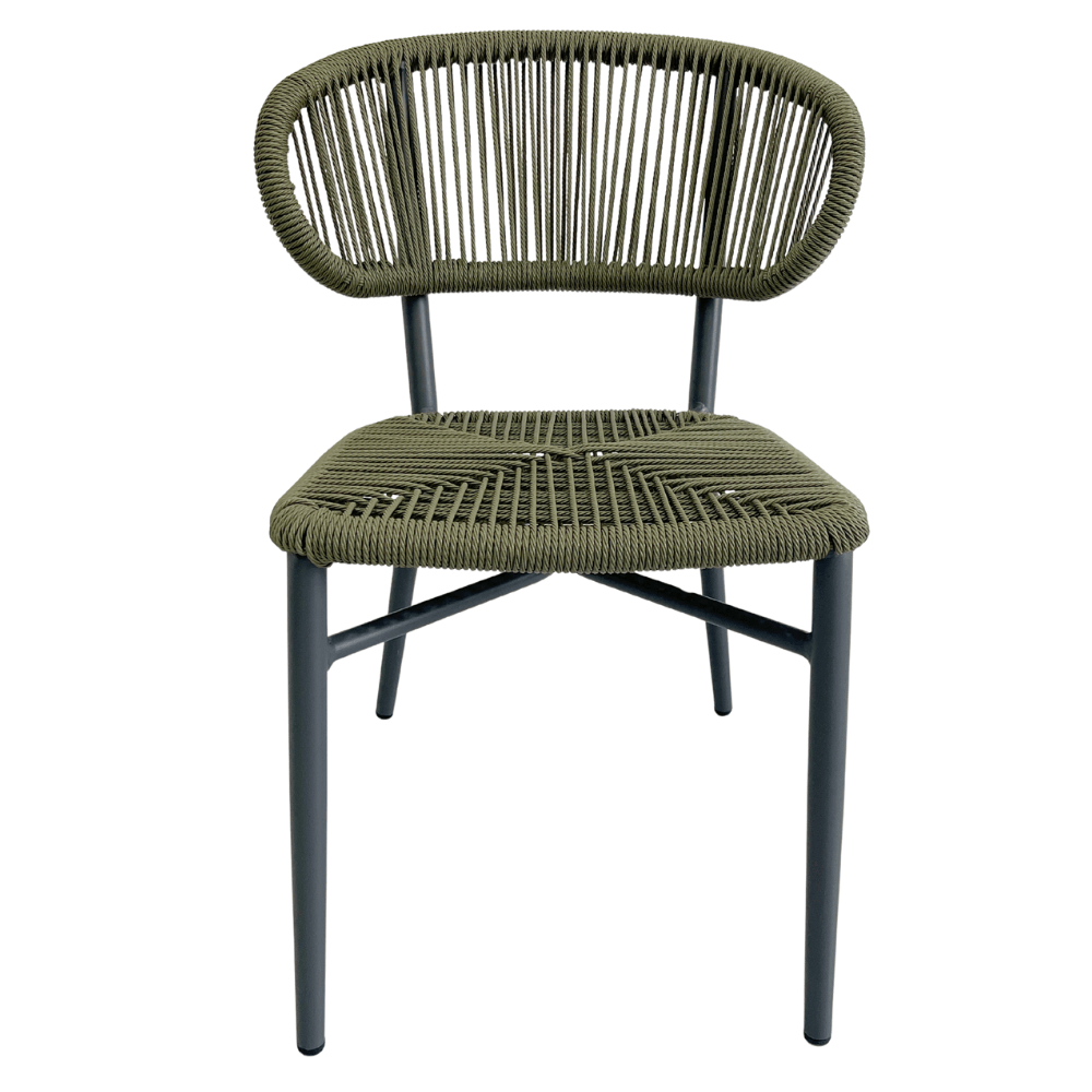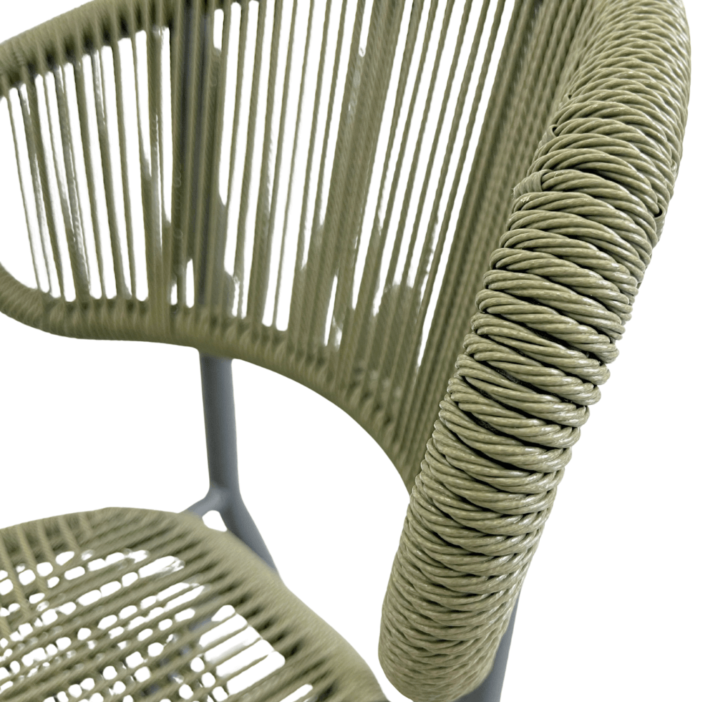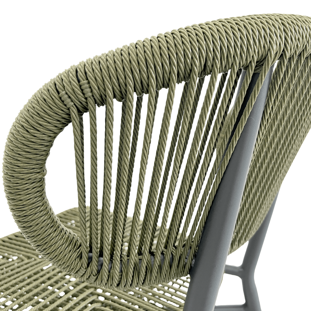 Der Terrassenstuhl Riva Opal Grün ist ein stapelbarer Gastro- und Caféstuhl aus Aluminium mit rund geflochtenem PE-Rattan – leicht, robust und pflegeleicht für den Outdoor-Einsatz.