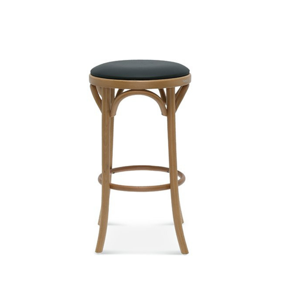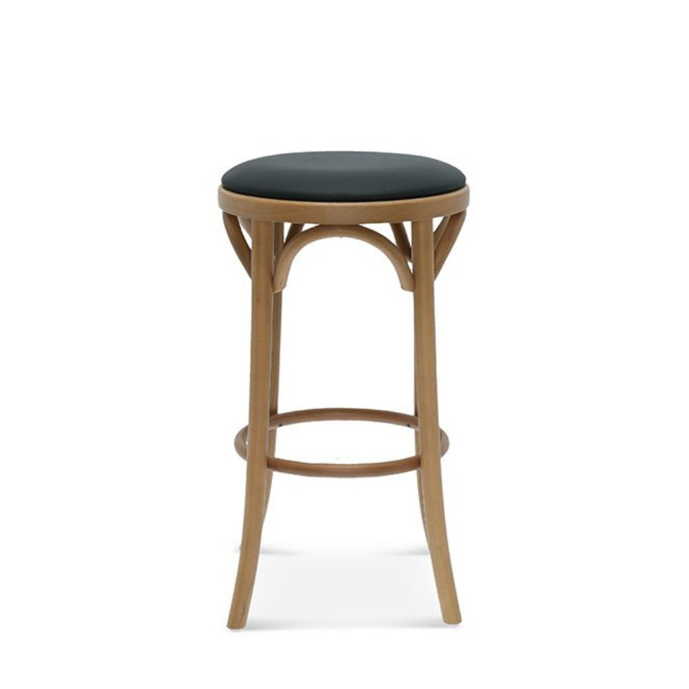 Der Premium Barhocker BST-9739/61 von Fameg zeigt elegant gebogene Buchenholzelemente, die Sitz und Beine verbinden. Diese niedrige Variante mit gepolstertem Sitz ist bequem, stabil und perfekt geeignet für Gastronomie, Bars und Hotellerie.