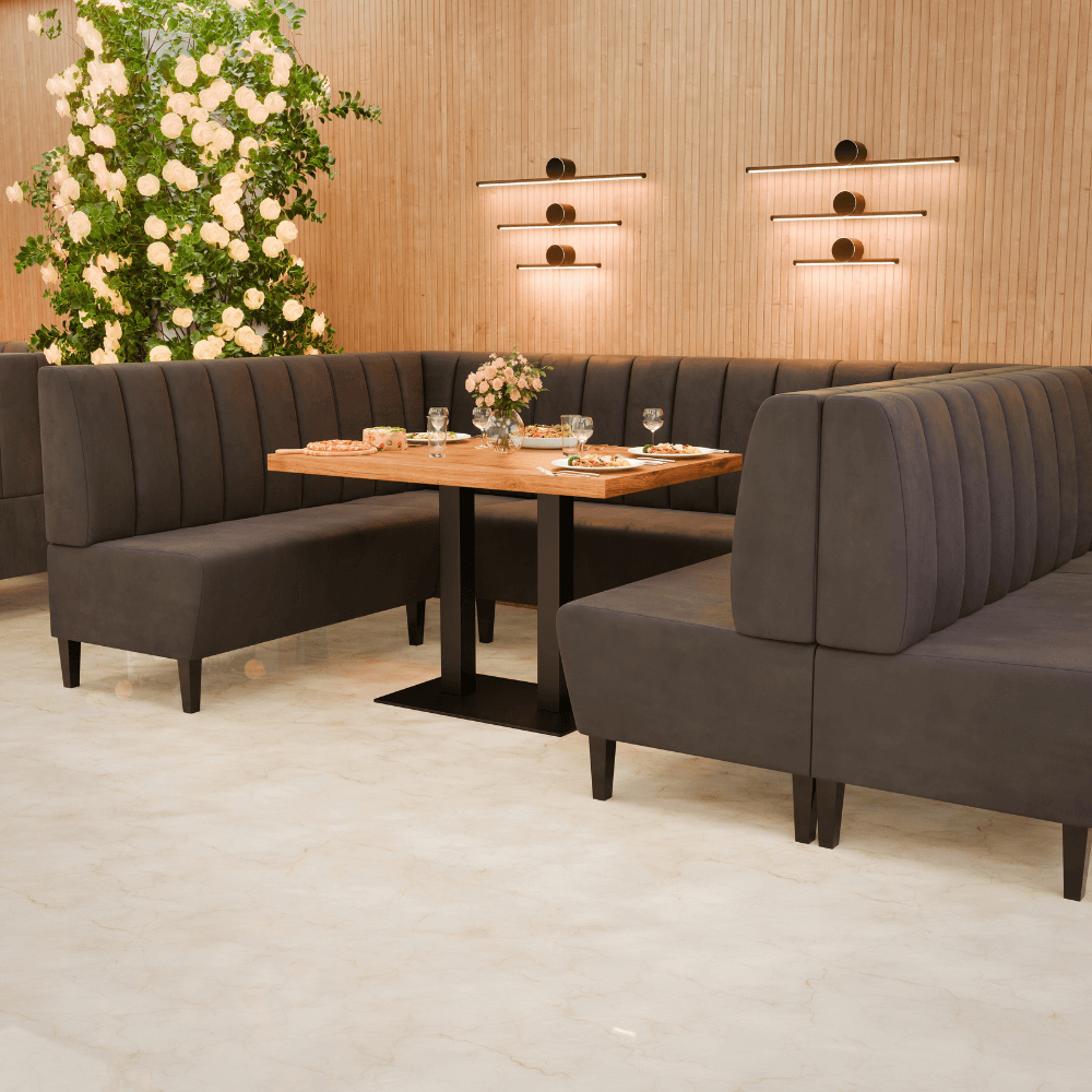 Die Gastro Eckbank Paris schafft komfortable Ecksituationen in der Gastronomie – langlebig, pflegeleicht und ideal für platzoptimierte Tischanordnungen.