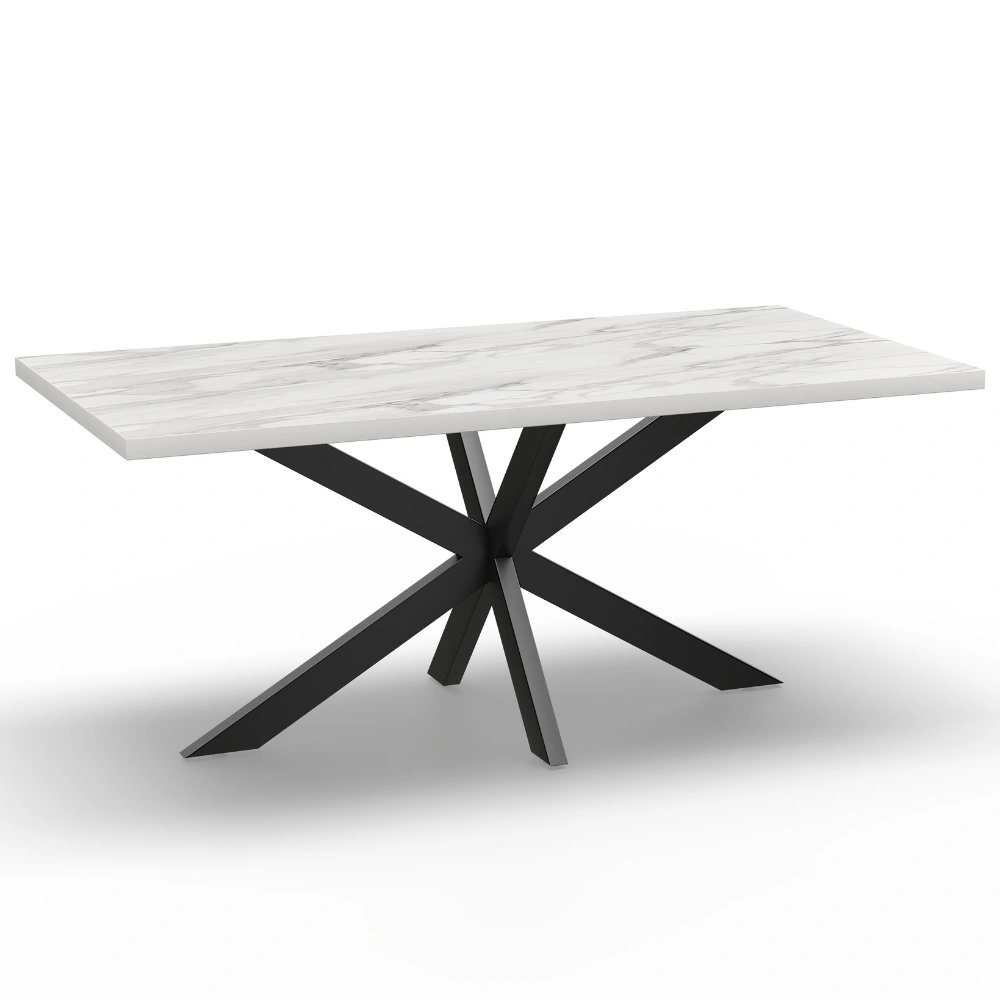 Gastro Esstisch 180×90 cm | Marmor Weiß | Spider-Gestell