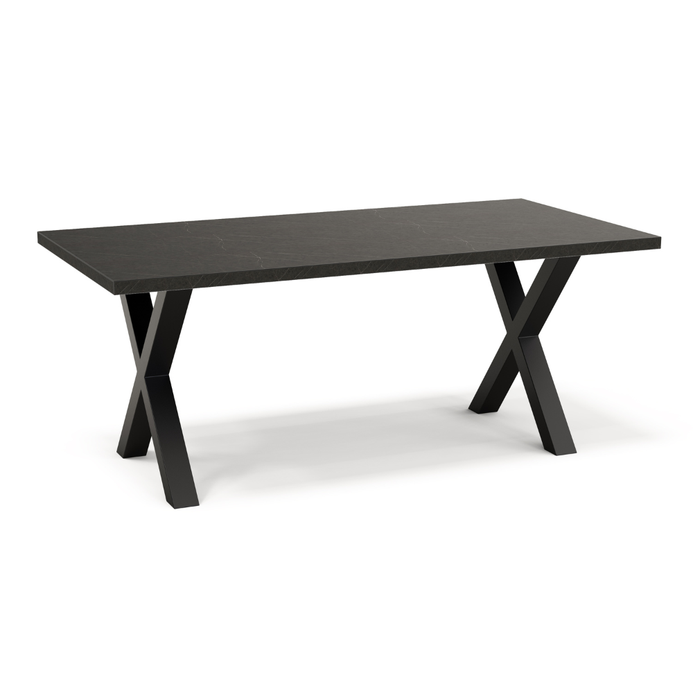 Gastro Esstisch 200×90 cm | Marmor Dunkel | X-Gestell Stahl