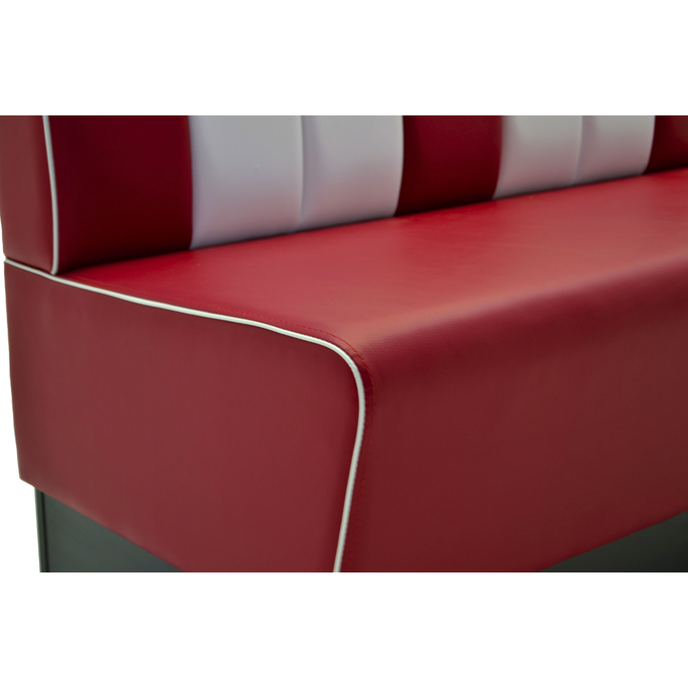 Die American Retro Sitzbank mit 160 cm Breite überzeugt mit stilvoller 50er-Jahre Optik und hohem Sitzkomfort. Die bequeme Polsterung, der voll bezogene Rücken und das robuste Buchenholzgestell machen sie ideal für den professionellen Einsatz in Gastronomie, Cafés oder Lounges. Dank des pflegeleichten Kunstleders ist sie auch im Alltag besonders praktisch.