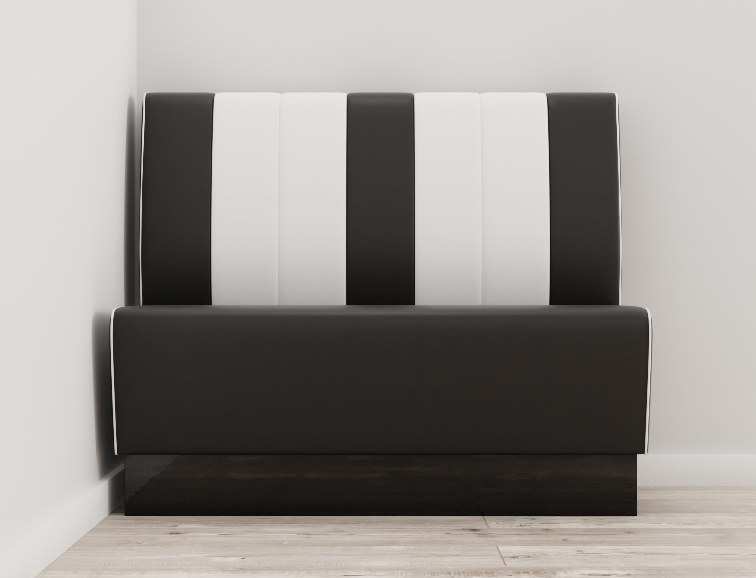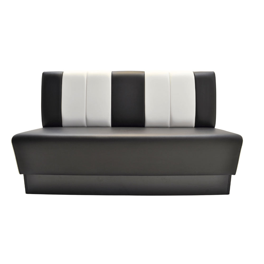 Die Americano Retro Sitzbank in Schwarz & Weiß bringt echtes Diner-Feeling in Ihre Gastronomie. Mit ihrer markanten Farbgebung, der klassischen Steppung und der bequemen Polsterung ist sie ideal für Burgerläden, Cafés, Restaurants oder Lounges. Der massive Sockel und die strapazierfähigen Materialien sorgen für Stabilität und Langlebigkeit im täglichen Einsatz.
