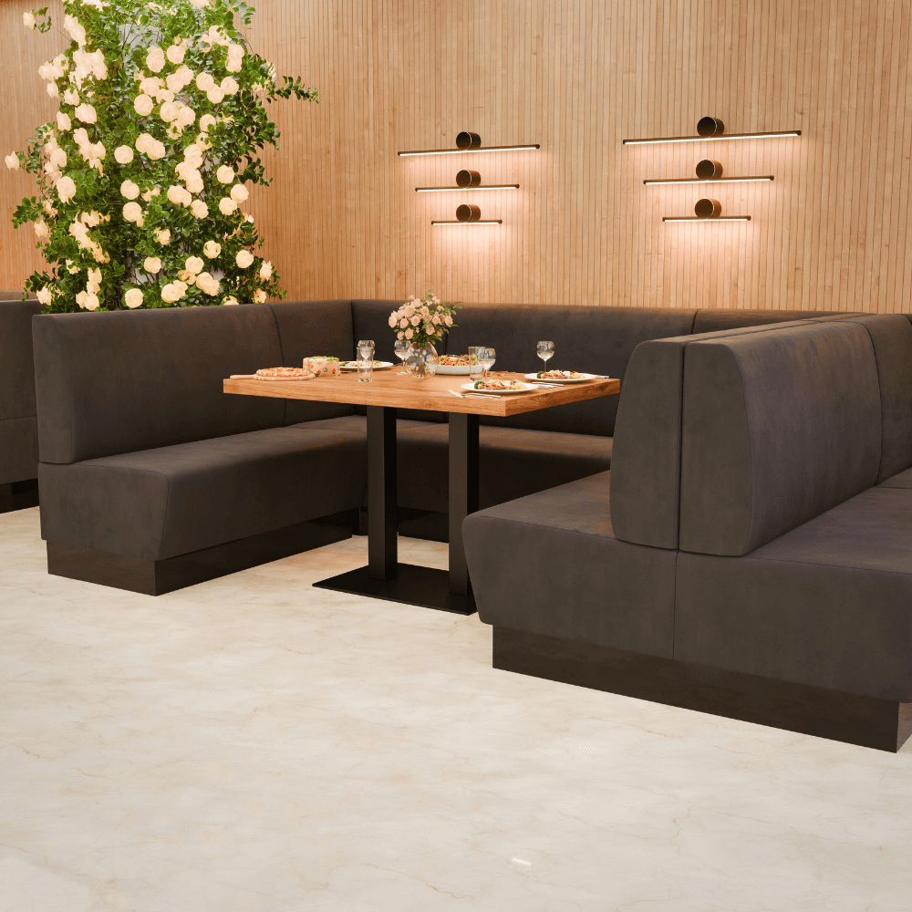 Die Gastro Sitzbank Amsterdam ist die bequeme Dinerbank für Restaurants, Cafés und Hotels – robust, pflegeleicht und ideal für stark frequentierte Gastronomie.