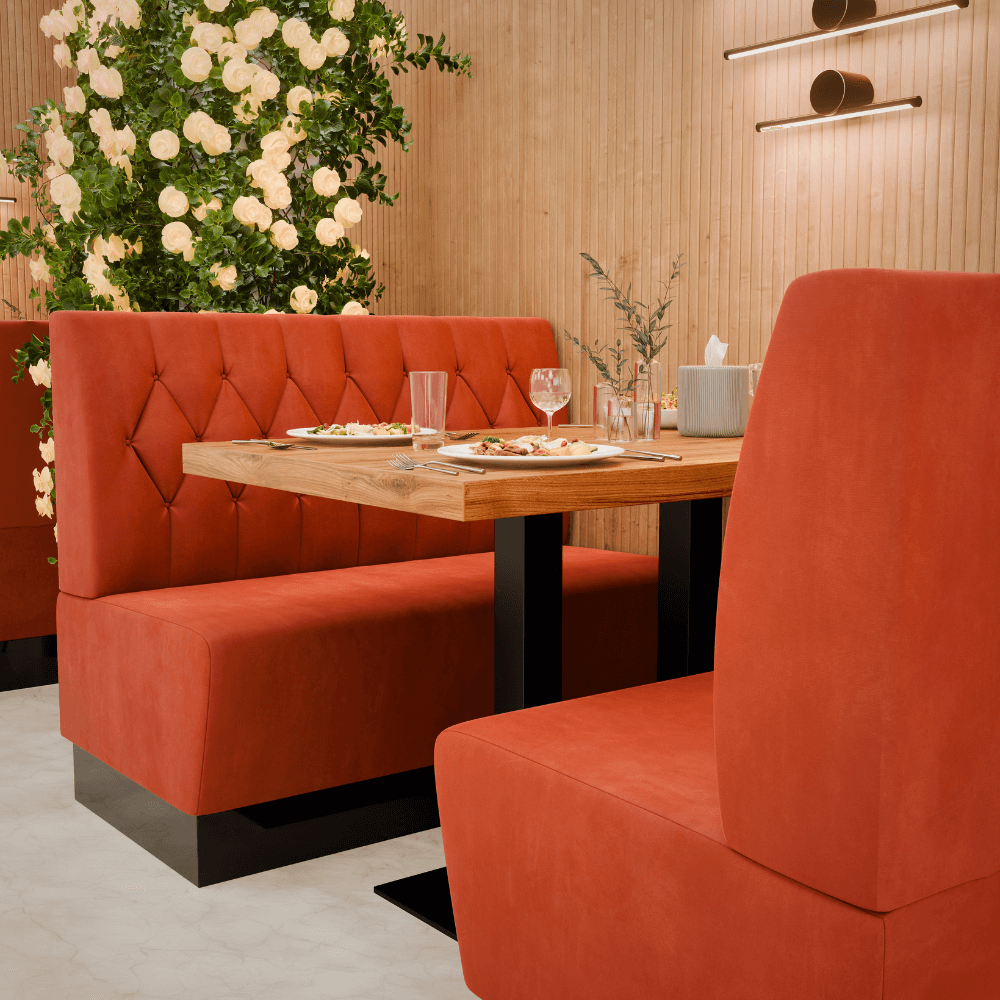 Die Gastro Sitzbank Amsterdam ist die bequeme Dinerbank für Restaurants, Cafés und Hotels – robust, pflegeleicht und ideal für stark frequentierte Gastronomie.