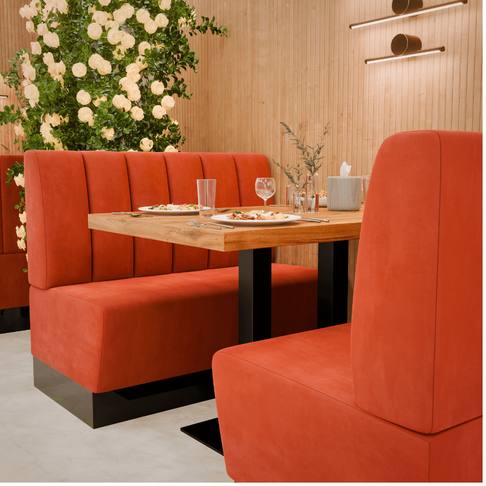 Die Gastro Sitzbank Amsterdam ist die bequeme Dinerbank für Restaurants, Cafés und Hotels – robust, pflegeleicht und ideal für stark frequentierte Gastronomie.