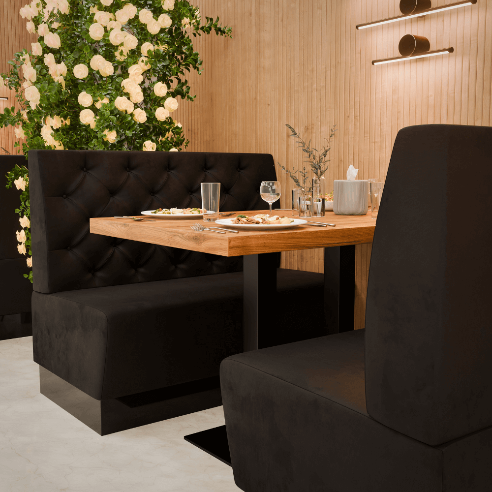 Die Gastro Sitzbank Amsterdam ist die bequeme Dinerbank für Restaurants, Cafés und Hotels – robust, pflegeleicht und ideal für stark frequentierte Gastronomie.