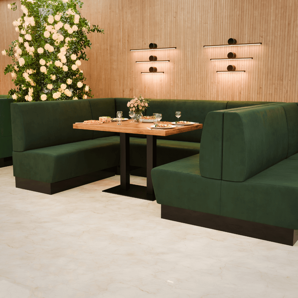 Die Gastro Sitzbank Amsterdam ist die bequeme Dinerbank für Restaurants, Cafés und Hotels – robust, pflegeleicht und ideal für stark frequentierte Gastronomie.