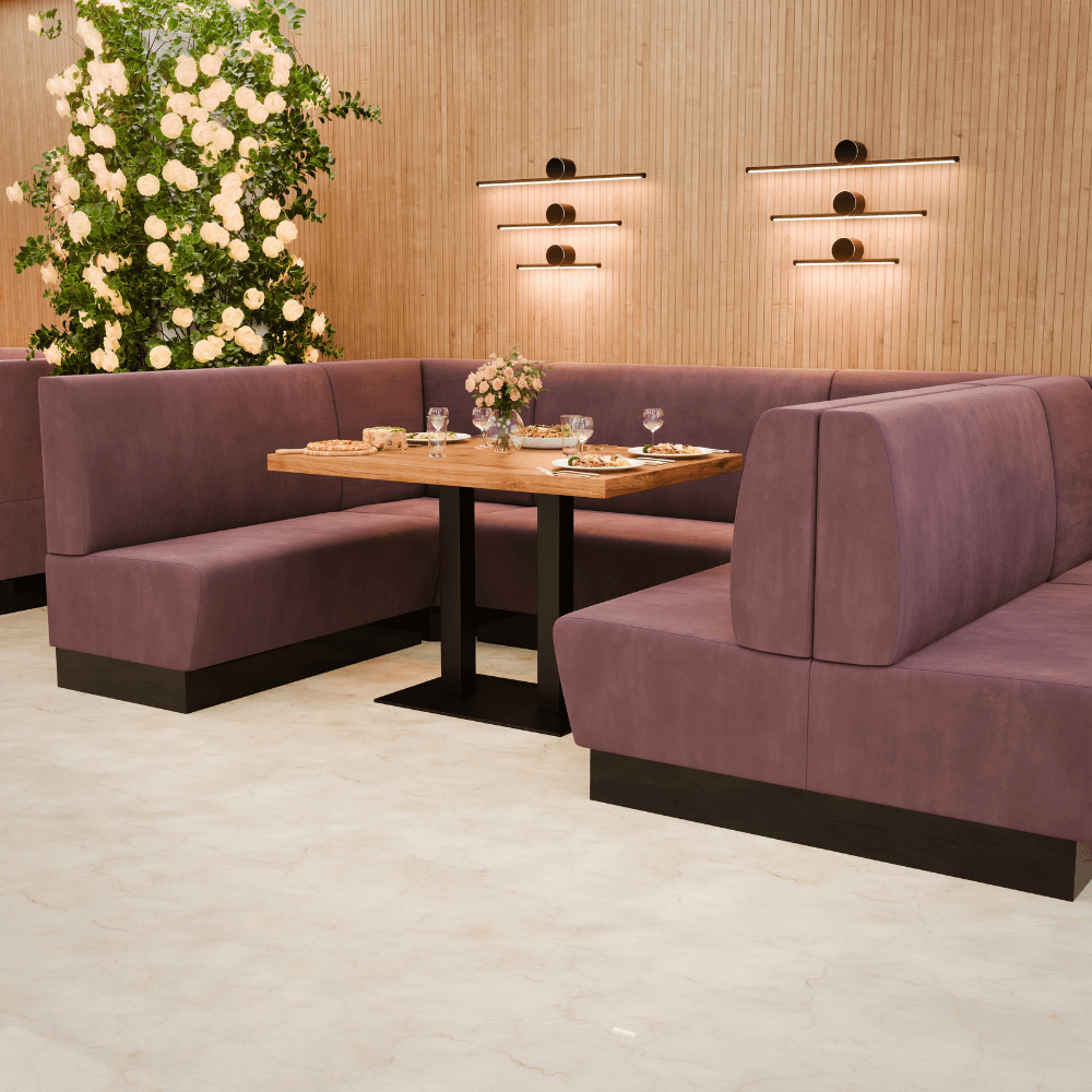 Die Gastro Sitzbank Amsterdam ist die bequeme Dinerbank für Restaurants, Cafés und Hotels – robust, pflegeleicht und ideal für stark frequentierte Gastronomie.
