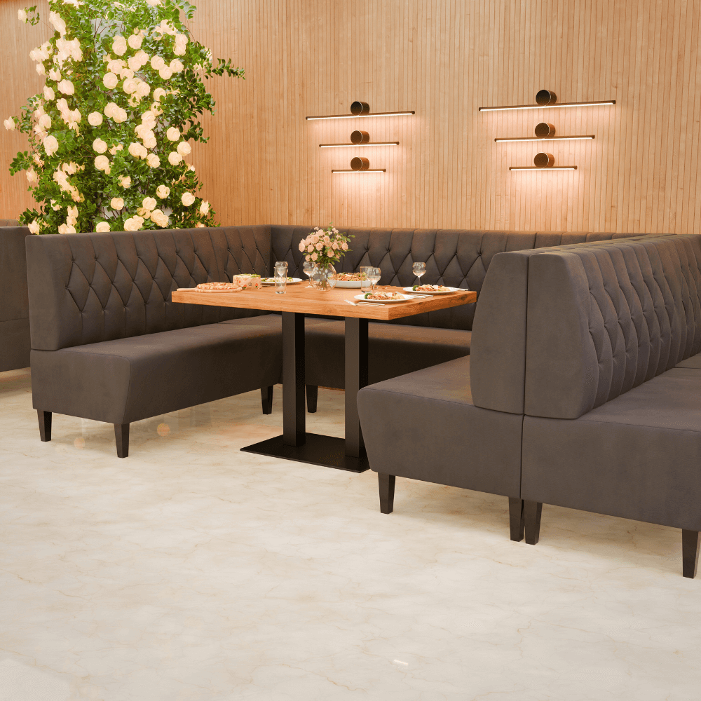 Die Gastro Sitzbank Paris vereint stilvolles Design mit Gastronomie-Tauglichkeit – strapazierfähig, komfortabel und perfekt als Dinerbank für die Objektmöblierung.