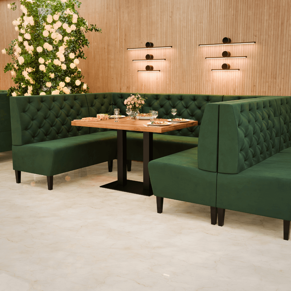 Die Gastro Sitzbank Paris vereint stilvolles Design mit Gastronomie-Tauglichkeit – strapazierfähig, komfortabel und perfekt als Dinerbank für die Objektmöblierung.