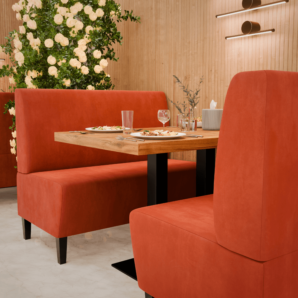 Gastro Sitzbank Paris | 100 cm breit | Samtstoff in Orange | Glatt | Dinerbank