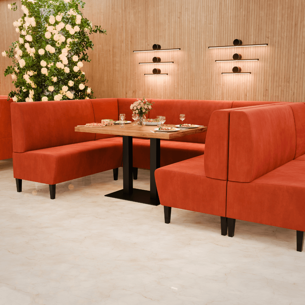 Die Gastro Sitzbank Paris vereint stilvolles Design mit Gastronomie-Tauglichkeit – strapazierfähig, komfortabel und perfekt als Dinerbank für die Objektmöblierung.