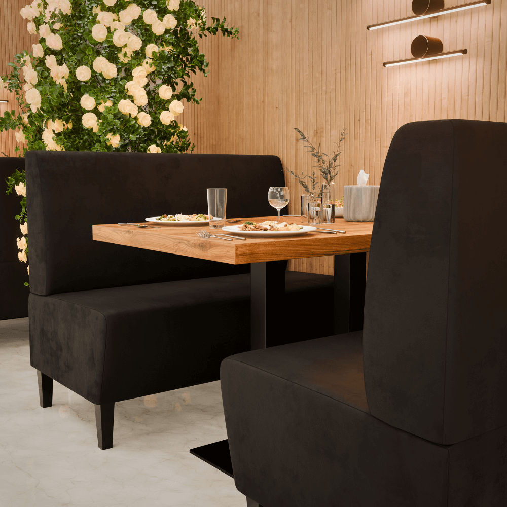 Die Gastro Sitzbank Paris vereint stilvolles Design mit Gastronomie-Tauglichkeit – strapazierfähig, komfortabel und perfekt als Dinerbank für die Objektmöblierung.