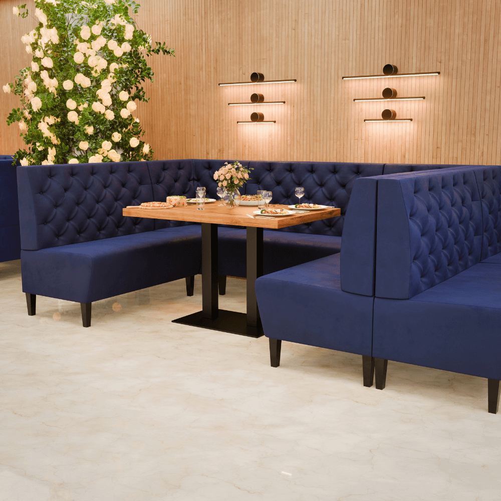 Die Gastro Sitzbank Paris vereint stilvolles Design mit Gastronomie-Tauglichkeit – strapazierfähig, komfortabel und perfekt als Dinerbank für die Objektmöblierung.