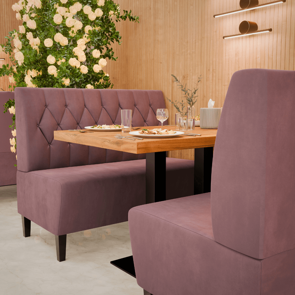 Gastro Sitzbank Paris | 180 cm breit | Samtstoff in Rosa-Lila | Diamant | Dinerbank