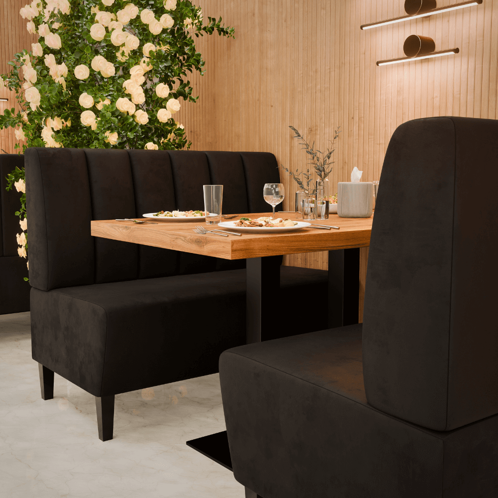 Die Gastro Sitzbank Paris vereint stilvolles Design mit Gastronomie-Tauglichkeit – strapazierfähig, komfortabel und perfekt als Dinerbank für die Objektmöblierung.
