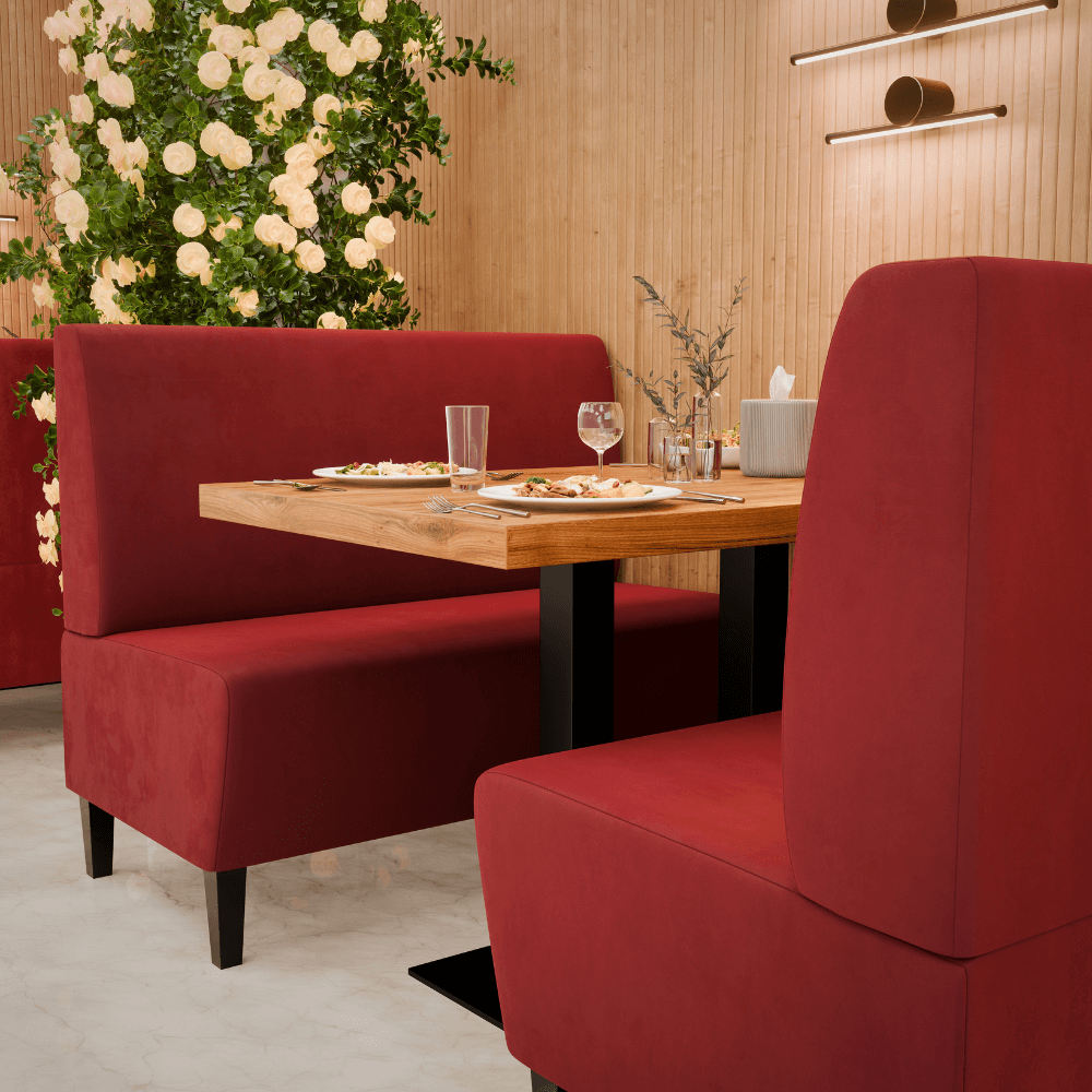 Die Gastro Sitzbank Paris vereint stilvolles Design mit Gastronomie-Tauglichkeit – strapazierfähig, komfortabel und perfekt als Dinerbank für die Objektmöblierung.