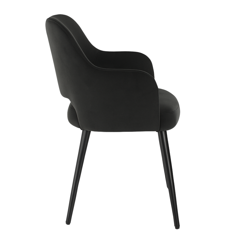 Mit dem Gastro Stuhl | Eleganza Comfort | Samt Anthrazit schaffen Sie eine stilvolle Verbindung aus moderner Ästhetik und funktionaler Qualität. Der edle Stoff in tiefem Anthrazit verleiht dem Raum Ruhe und Eleganz, während das schwarz gebeizte Buchenholzgestell für Stabilität und Langlebigkeit sorgt – ideal für stilvolle Gastronomie-Konzepte mit Anspruch.