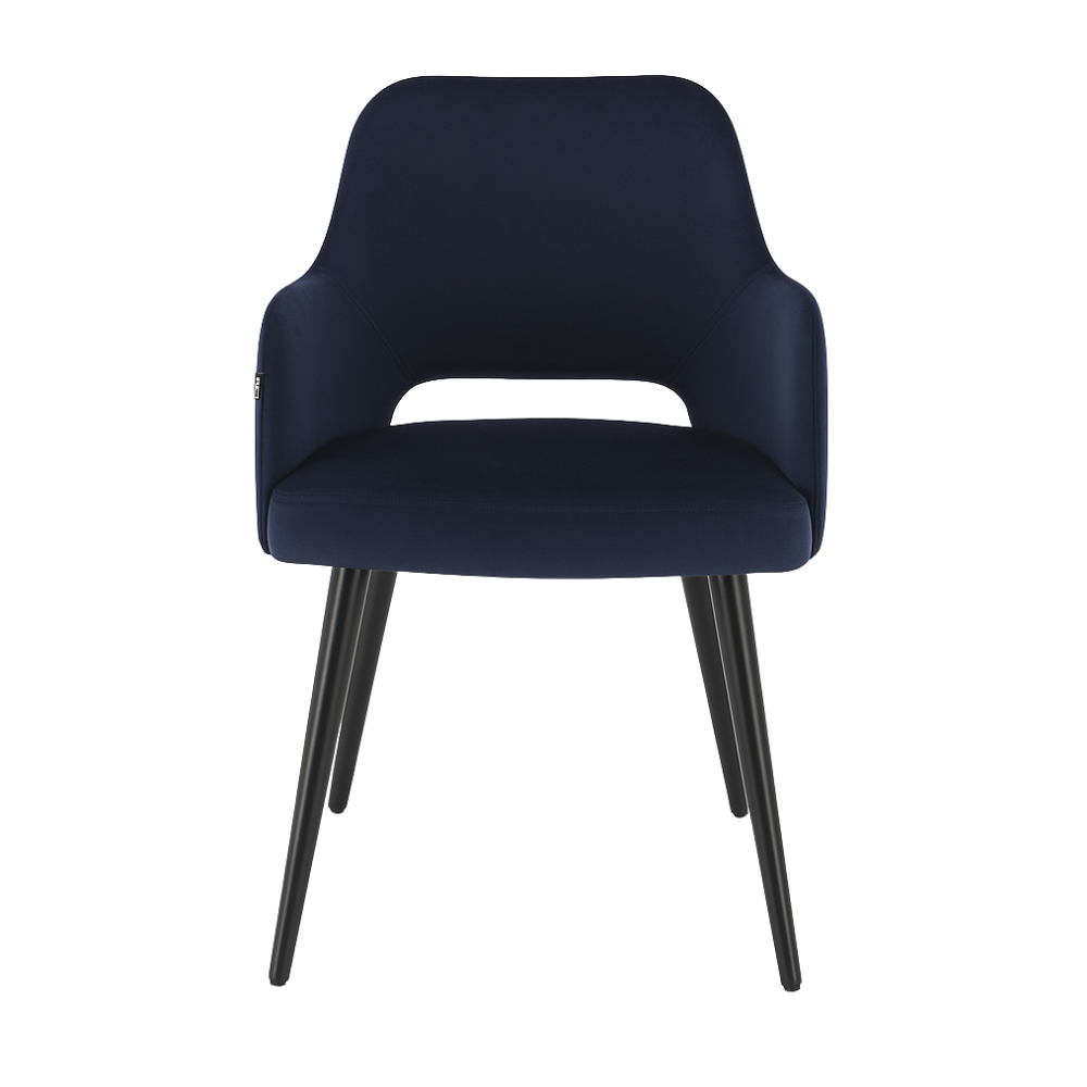 Der Gastro Stuhl | Eleganza Comfort | Samt Blau bringt edles Design und luxuriösen Komfort in Ihre Gastronomie. Der tiefblaue Samtbezug setzt stilvolle Akzente, während das schwarz gebeizte Buchenholzgestell durch Stabilität und Handwerkskunst überzeugt. Eine perfekte Wahl für stilbewusste Restaurants, gehobene Cafés oder exklusive Lounge-Bereiche.
