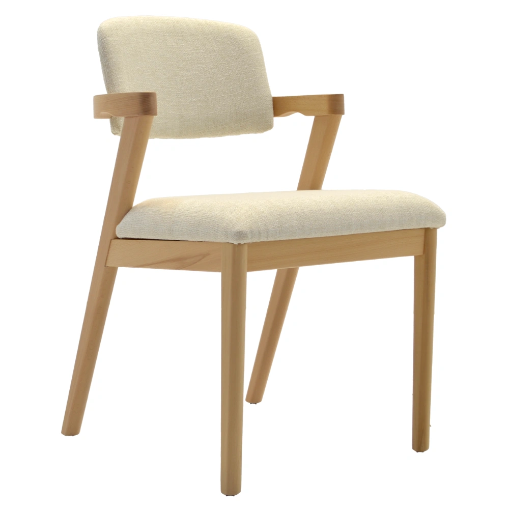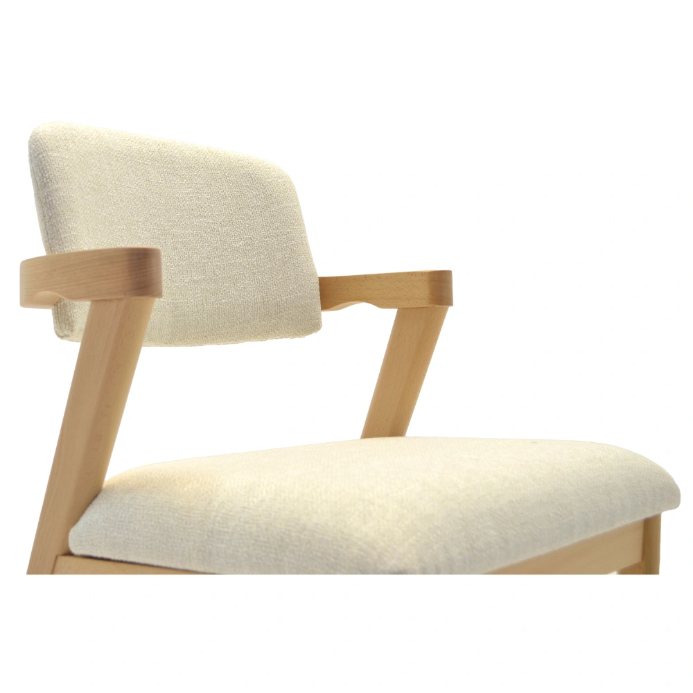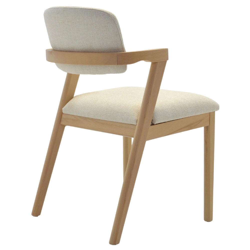 Der Nava Polsterstuhl vereint modernes Design mit natürlicher Ausstrahlung – perfekt für Restaurants, Cafés oder stilvolle Hotelbereiche. Das massive Holzgestell in Naturton harmoniert ideal mit dem hellen Polster und sorgt für einen einladenden Look im Innenbereich.