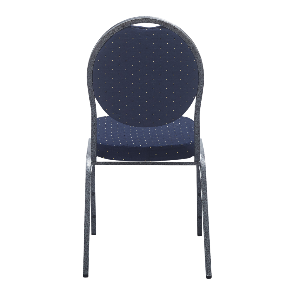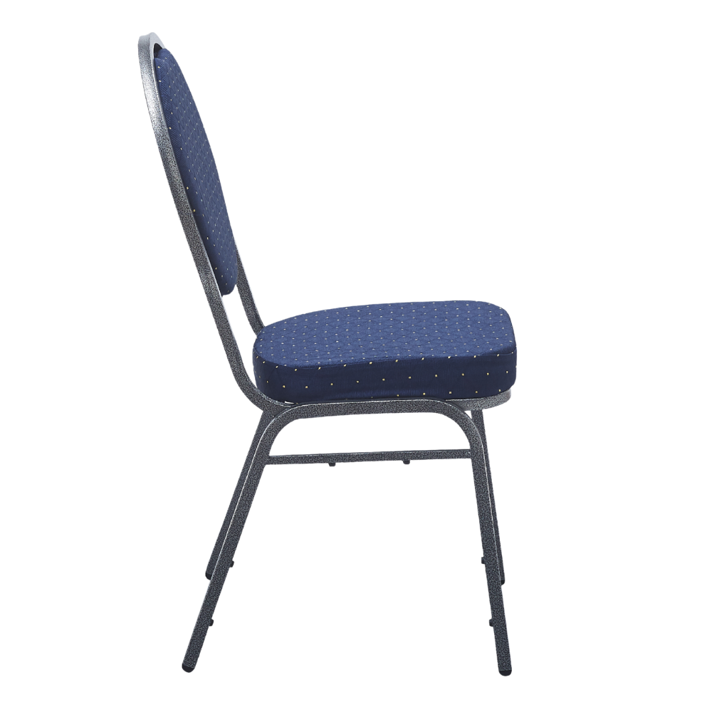 Der Bankettstuhl Hermano in Marineblau bietet durchdachten Komfort für Bankette, Konferenzen oder Festhallen. Die edle Farbgebung und das stabile Gestell aus Hammerschlag-Stahlprofil machen ihn zum vielseitigen Sitzmöbel für den gewerblichen Einsatz – im Set mit 50 Stück erhältlich.