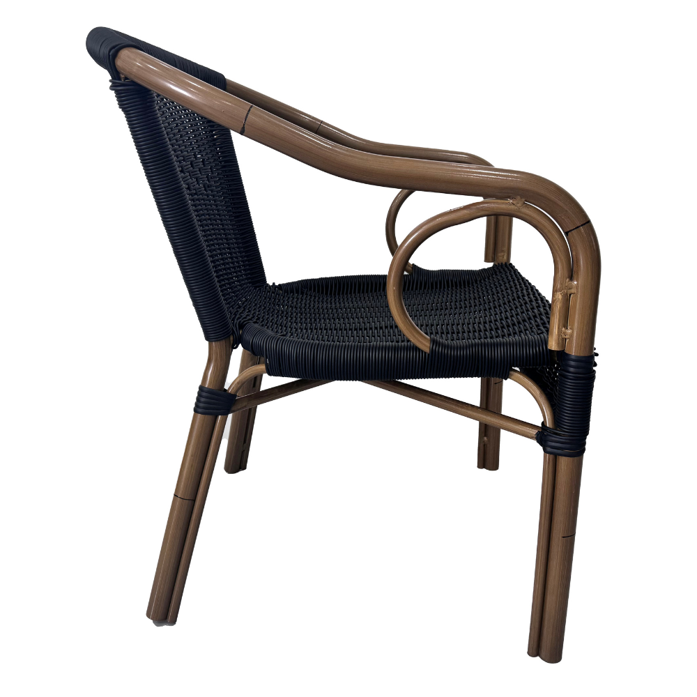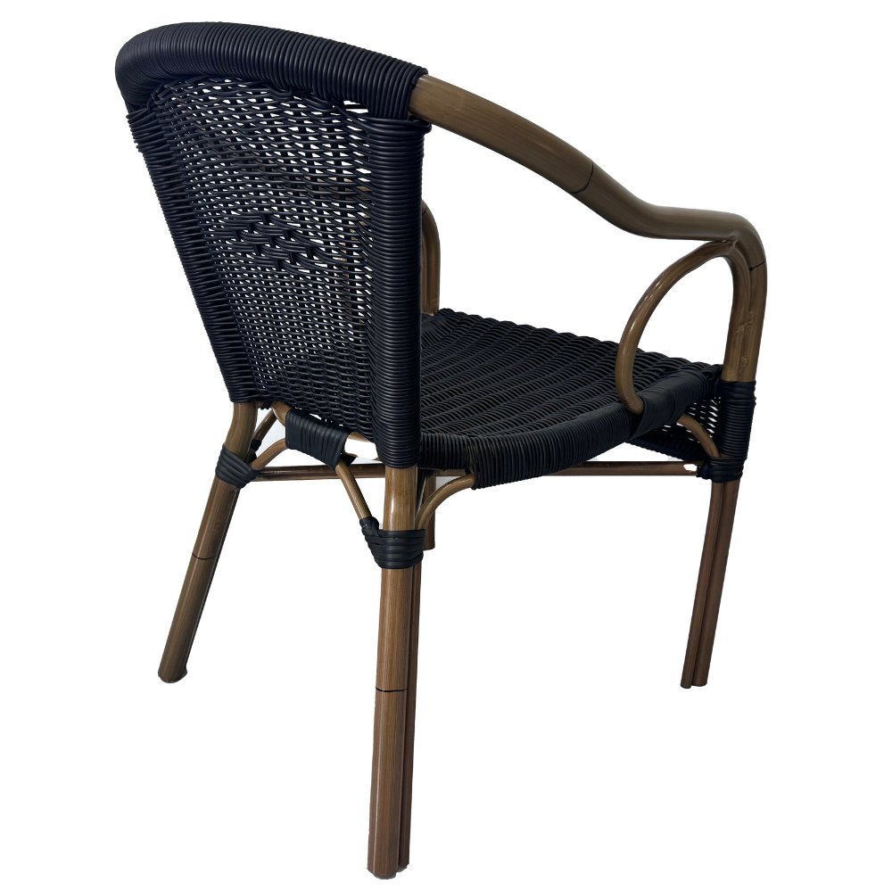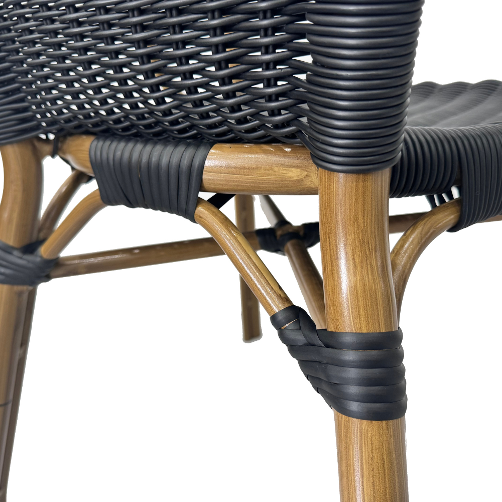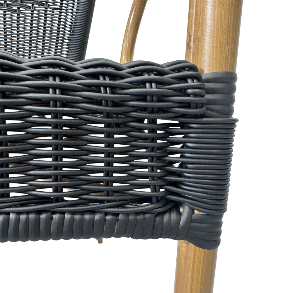 Der Terrassenstuhl Camille ist ein stapelbarer Gastrostuhl für den Außenbereich und eignet sich ideal für Terrasse, Garten und Außenflächen in Gastronomie, Café und Hotel. Die Kombination aus Aluminiumgestell und PE-Rattan sorgt für eine hochwertige Optik und praktische Handhabung im täglichen Einsatz.
