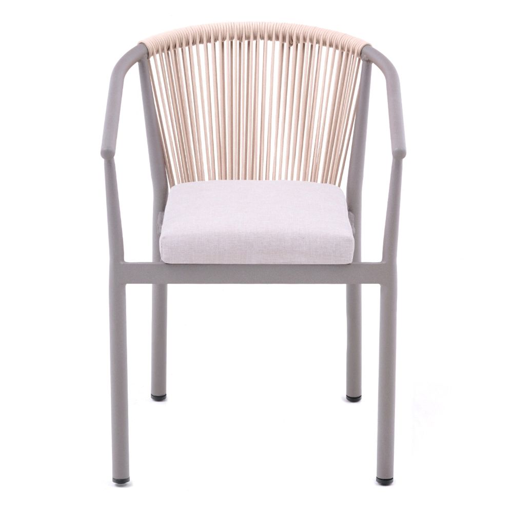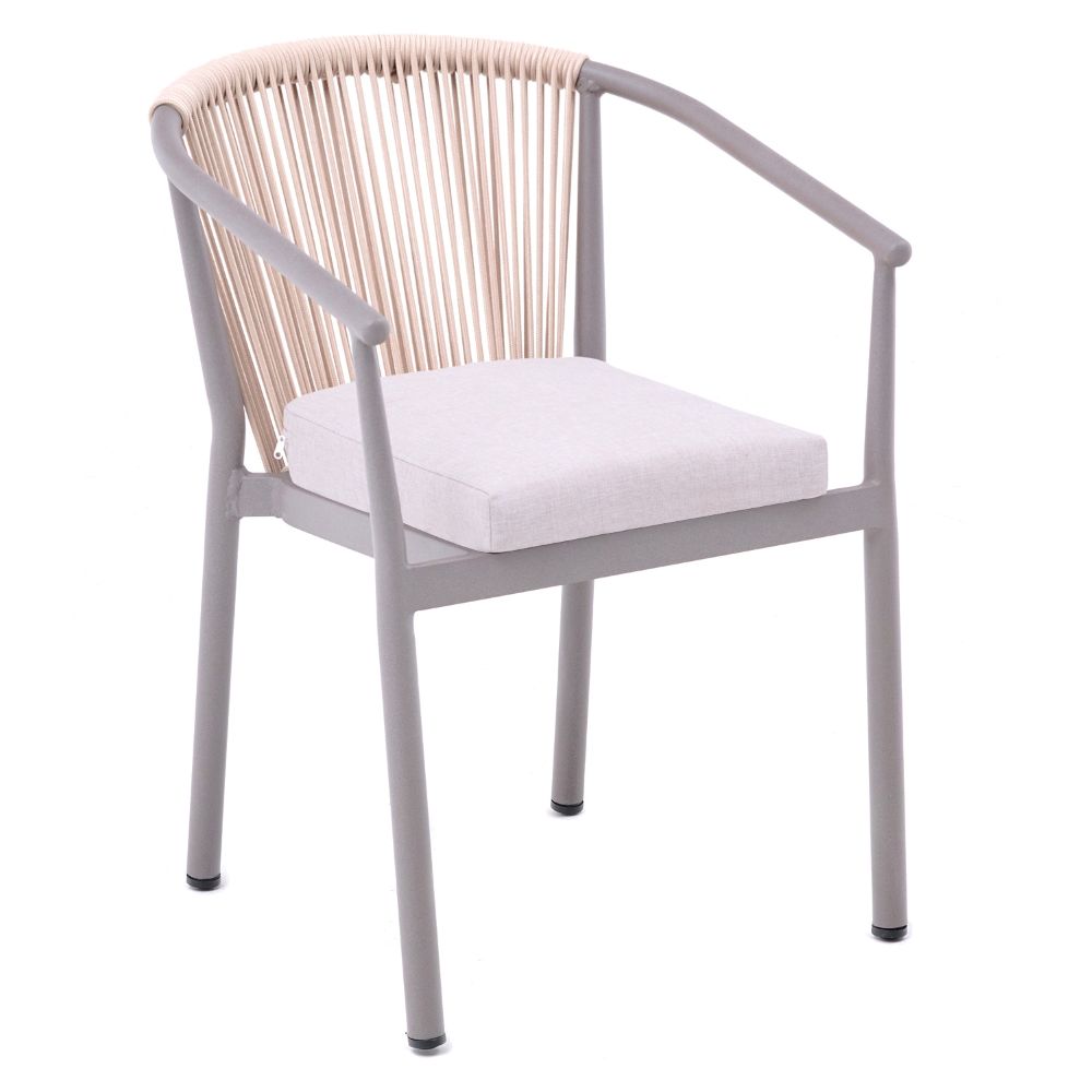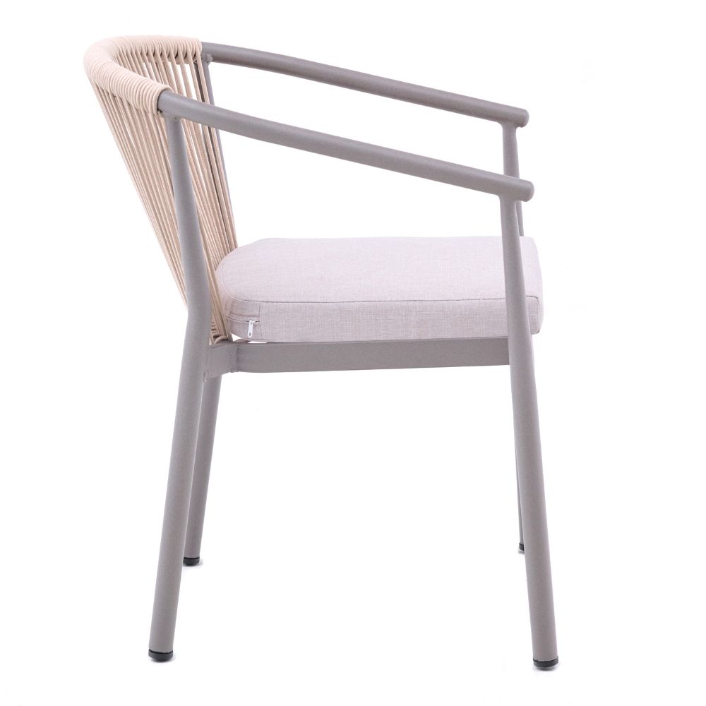 Der Terrassenstuhl „Freja“ vereint stilvolles Design mit hoher Funktionalität. Sein pulverbeschichtetes Aluminiumgestell sorgt für maximale Stabilität, während das edle Seil-Geflecht eine moderne Optik verleiht. Dank seines geringen Gewichts von 4,5 kg lässt sich der Stuhl mühelos umstellen – perfekt für den Garten, die Terrasse oder den Wohnbereich.